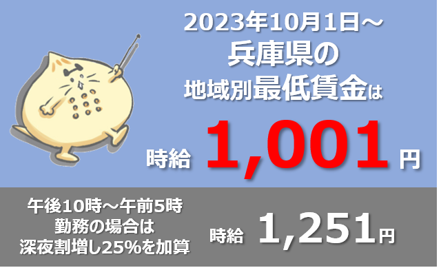 兵庫県の最低賃金は10月1日から1,001円に改正されました!