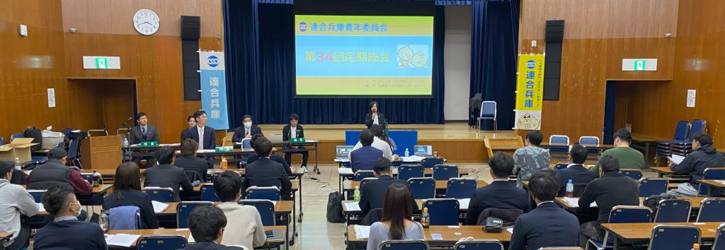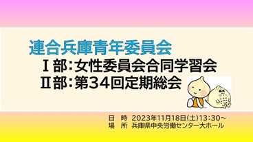 連合兵庫青年委員会は、11月18日(土)13:30から、兵庫県中央労働センター2階大ホールにて、女性委員会合同の学習会と第34回定期総会を開催し、構成組織・地域協議会から49名、役員14名、事務局3名の66名が参加しました。