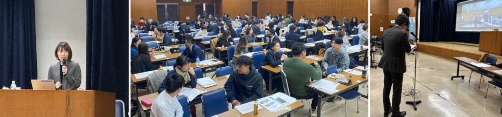 (写真)左:講師、中:グループディスカッション様子、右:質疑様子