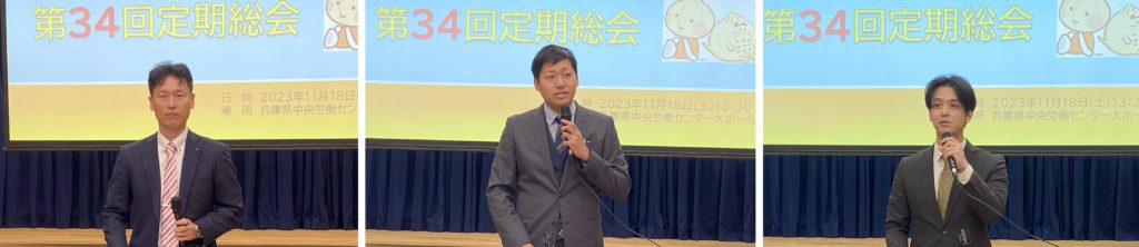 (写真)左:磯村 青年委員会幹事、中:那須 連合兵庫事務局長、右:深江 青年委員会委員長