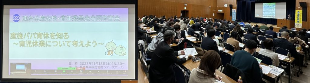 Ⅰ部の合同学習会は、連合が取り組む『ジェンダー平等』で未来をつくろう、を観点に女性・男性に関わる内容として『産後パパ育休を知る』をテーマにした講演を行いました。