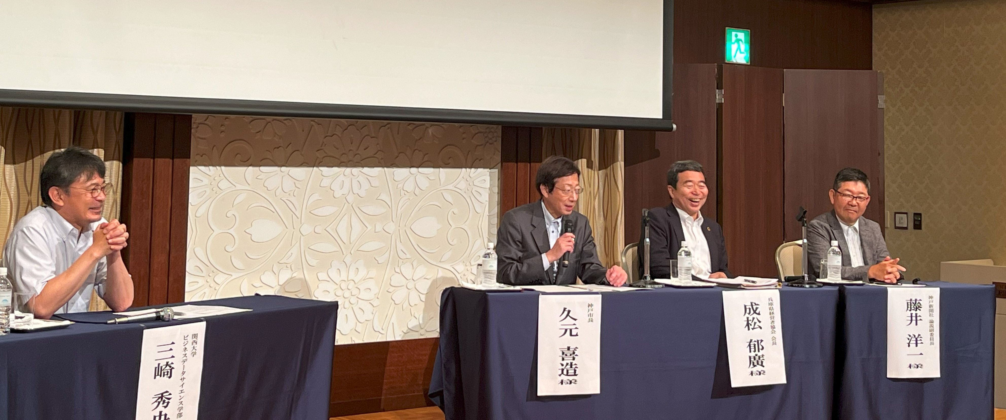 ひきつづき、三崎教授にコーディネーターをお願いし、「神戸を新たなステージにするために」をテーマにパネルディスカッションをおこないました。