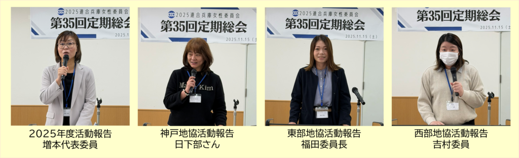 続いて、増本代表委員(兵教協)から、第34期(2025年度)の活動報告に加え、今年度は連合兵庫の各地域協議会における女性委員会活動について、それぞれ報告が行われました。