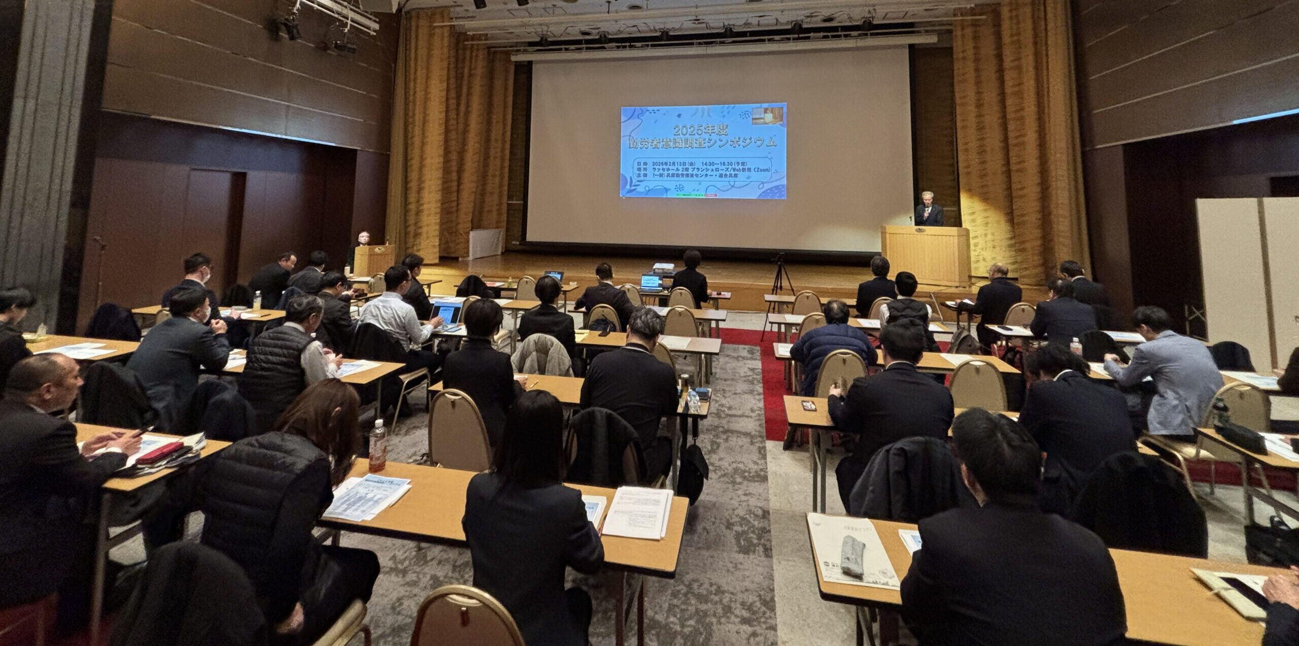 ◆一財)兵庫勤労福祉センターと連合兵庫は、2月13日(金)に神戸市のラッセホールにて『2025年度 勤労者意識調査シンポジウム』を開催し、連合兵庫構成組織、地域協議会、連合兵庫フォーラム会員あわせて86名(会場47名、オンライン39名)が参加しました。