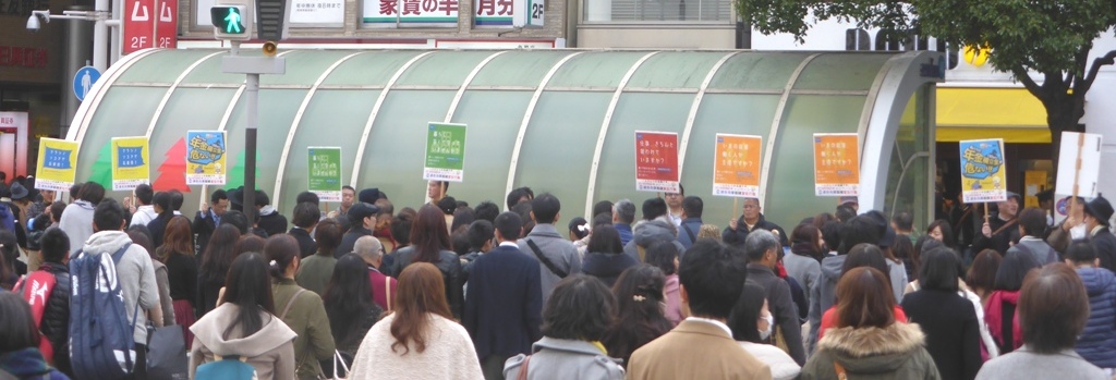 ◆連合兵庫は、新たなキャンペーンの重要性と連合兵庫2016~2017年度運動方針に基づき、12月8日に実施された連合本部のキャンペーン開始行動、宣言集会を起点とし、第1ゾーンを「運動のキックオフ」として、12月13日(日)に三ノ宮のそごう前で、働く者・生活者の立場から「働く人が報われる社会」を念頭においた社会的対抗軸を、組合員だけでなく広く国民に訴えるキャンペーンをスタートしました。