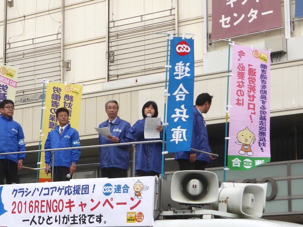 ◆兵庫県下の、働く仲間、と民主党兵庫県連所属の各級議員、関連団体と連携し、午後3時頃から街宣車による街頭アピールと、「クラシノソコアゲ応援!2016RENGOキャンペーン」チラシ(ティッシュ)を配布しました。